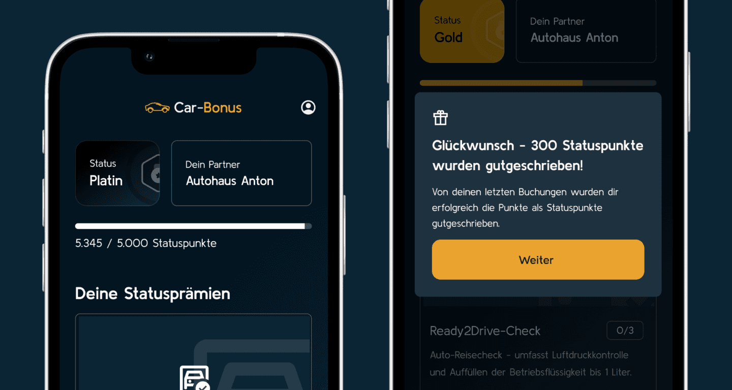 Unser System ist maximal flexibel. Sie können eigene Logiken für Statuslevel und Prämien definieren – von der Kilometerleistung bis hin zum schadenfreien Fahren – ganz ohne Programmieraufwand.