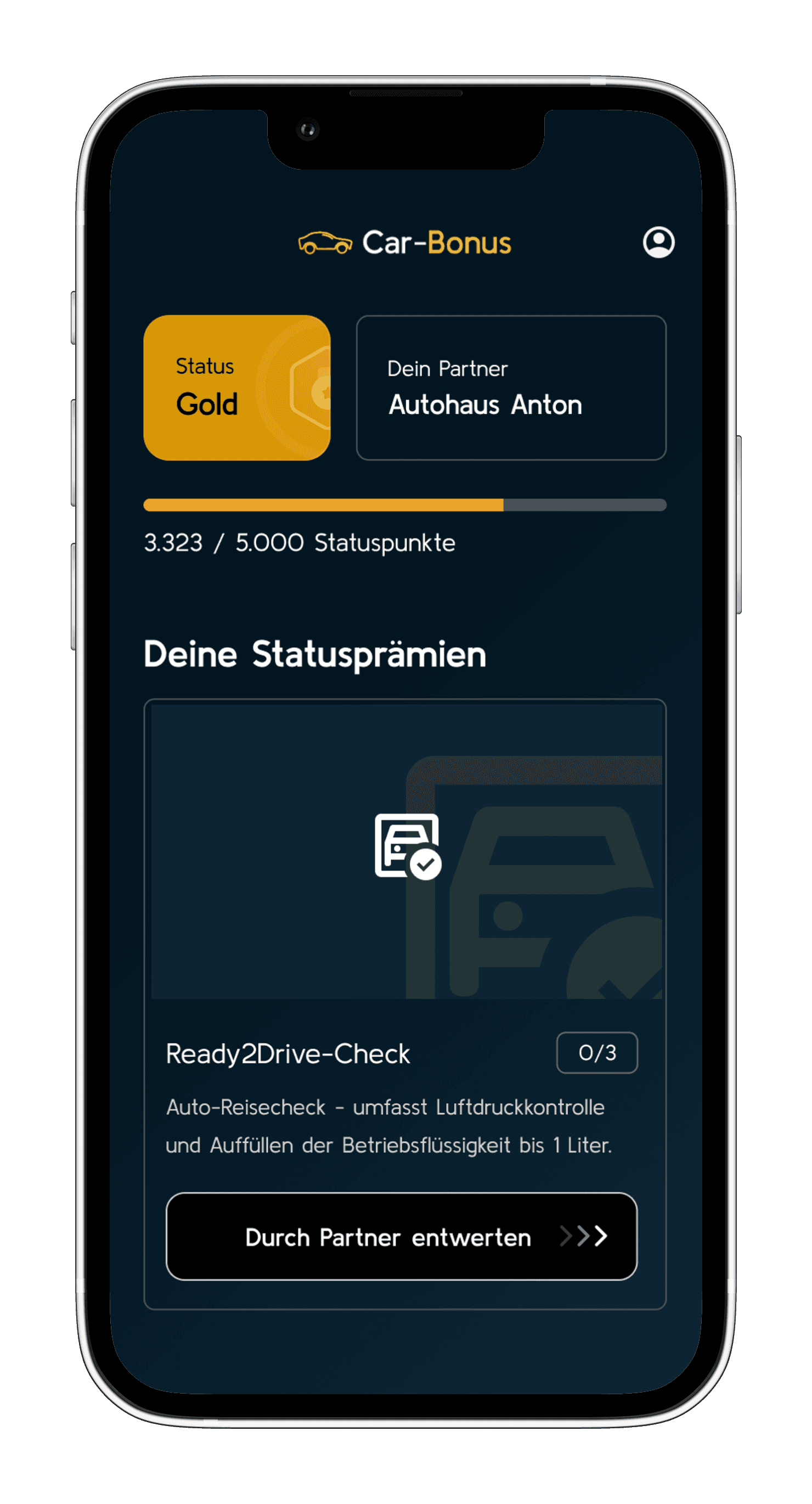 Rollen Sie Car-Bonus intern aus und laden Sie Ihre Kunden in die App ein. Definieren Sie Ihre individuellen Status-Regeln und schalten Sie die ersten Prämien frei, um sofortige Motivation und loyale Interaktion in Ihrer Flotte zu erzeugen.